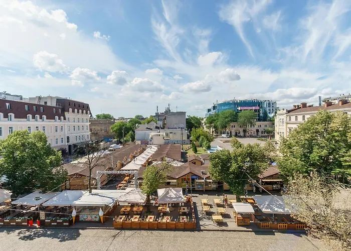 Vorontsov-fyret ligger 5 minutters kørsel derfra, mens Odesa Central lufthavn ligger 15 minutters kørsel fra indkvarteringen. Odessas teater for opera og ballet kan nås på 10 minutter til fods. Der er spisemuligheder i nærheden som Corvin Pub og Tiflisi. Gæsterne kan udforske Byhave og Athena som er beliggende i nærheden.